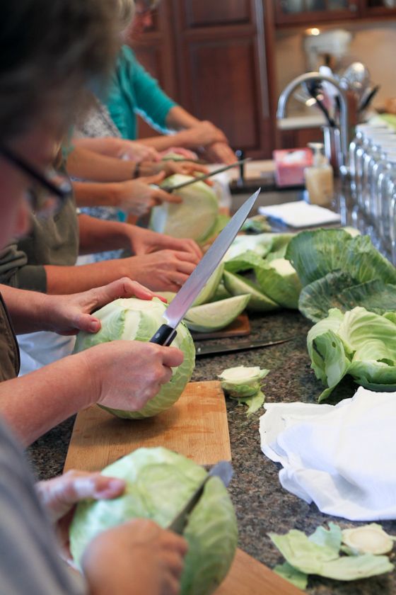 Kapustę obierano z brudnych i uszkodzonych liści, które nie nadawały się do przetworu, a następnie rozkrawano główki, usuwano z środka tak zwane głąby i drobno siekano. Cały rytuał odbywał się oczywiście w kuchni. Należy wspomnieć, że tradycyjna polska kuchnia była kiedyś największym pomieszczeniem w całym domu. Z racji, że w większości domów zamieszkiwało wspólnie kilka pokoleń, potrzebne było miejsce na duży stół, przy którym wszyscy mogli zasiąść i najeść się do syta.