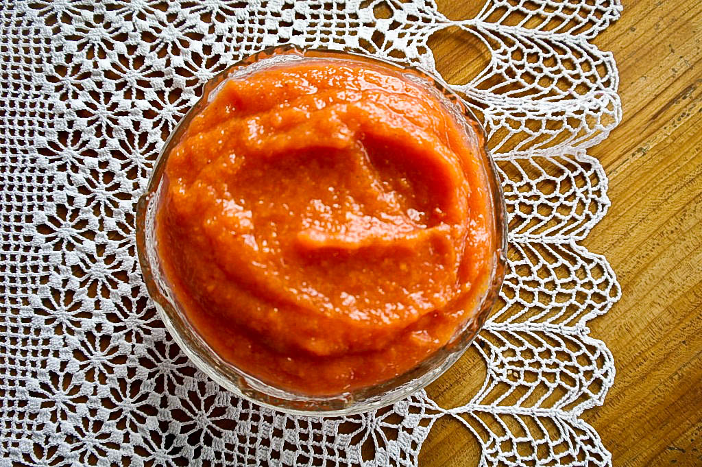 1 kg jabłek pokrojonych, 1 kg owoców jarzębiny wrzucamy na 300 ml wody gotującej się z 1/2 kg cukru. Razem przesmażamy do czasu uzyskania konsystencji papki, którą następnie przecieramy przez grube sito. Otrzymujemy mus jabłkowy, który możemy poddawać dalszej obróbce. Mus ma smak lekko gorzki, więc doskonale nadaje się do tego, by zrobić z niego np sos do mięs lub fasoli o ostrym smaku podkreślonym przez odrobinę papryki chili i lampkę wina czerwonego. Całość zagotuj, zamieszaj i podbij mąką lub śmietaną. Ja swój mus zjem po prostu z naleśnikami gryczanymi lub z kaszą jaglaną. Ostatnio polubiłam smaki troszkę gorzkie, więc doskonale się będzie nadawało.