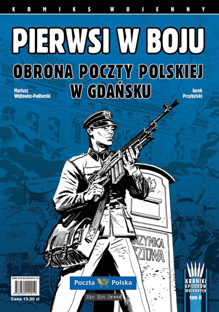 Autorem scenariusza „Pierwszych w boju” jest gdańszczanin Mariusz Wojtowicz-Podhorski, który był też twórcą wydanego sześć lat temu komiksu o bohaterskiej obronie Westerplatte we wrześniu 1939 r. Rysunki do komiksu wykonał grafik Jacek Przybylski z Bydgoszczy. Komiks „Pierwsi w boju” został wydany w nakładzie czterech tysięcy egzemplarzy. Mecenat nad publikacją objęła Poczta Polska SA. Niemiecki atak na Pocztę Polską w Gdańsku rozpoczął się 1 września 1939 r. o godz. 4.45, równocześnie z rozpoczęciem ostrzału polskiej składnicy wojskowej na Westerplatte przez pancernik Schleswig-Holstein. Polscy pocztowcy odpierali natarcie wroga przez czternaście godzin. Budynek był ostrzeliwany m.in. przez ciężką artylerię. Aby zmusić obrońców do kapitulacji, hitlerowcy podpalili pocztę. Idącego z białą flagą dyrektora poczty Jana Michonia Niemcy zastrzelili i śmiertelnie poparzyli miotaczem ognia idącego za nim naczelnika urzędu. Kilku pocztowcom udało się uciec z budynku. Reszta została aresztowana, a ranni trafili do szpitala. 38 Polaków trafiło pod sąd polowy, oskarżeni za działania partyzanckie i skazani na karę śmierci. Wyrok wykonano 5 października 1939 r., ciało pochowano na terenie gdańskiej Zaspy.