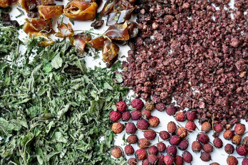 Korzystam z przepisu na wino z daktylami, które wzbogacam rodzynkami, owocami dzikiej róży, głogu. Wychodzę do lasu i patrzę, co tam mam. A wy po prostu idziecie na targ i kupujecie u pani owoce głogu i owoce dzikiej róży lub kupujecie suszone w sklepie zielarskim. Aha, jeszcze dorzuciłam owoce maliny – suszone, ze sklepu zielarskiego.