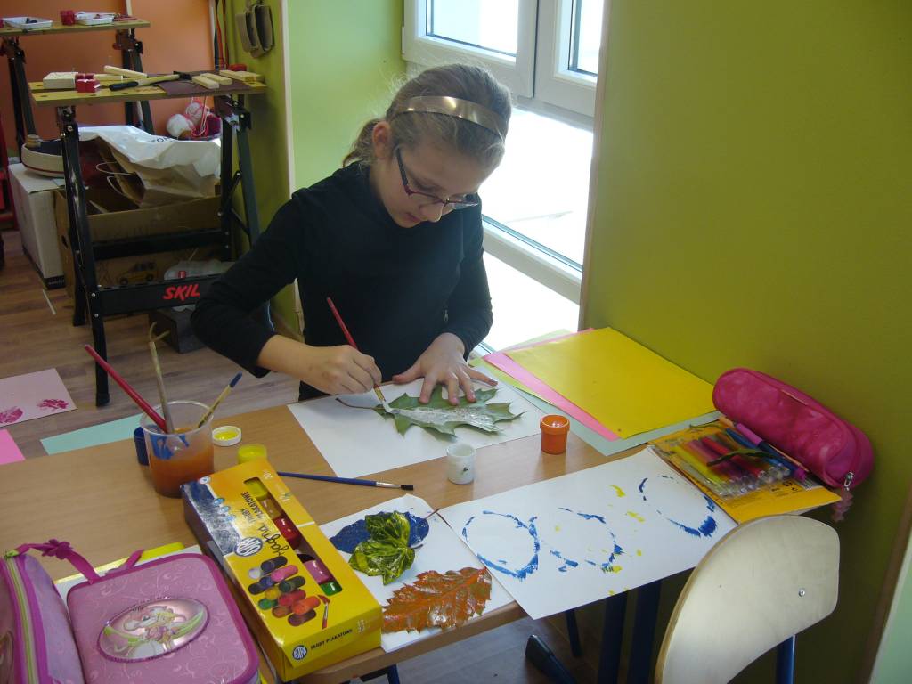 Wraz moimi uczniami wykonaliśmy pracę „Liściaste odbijanki”