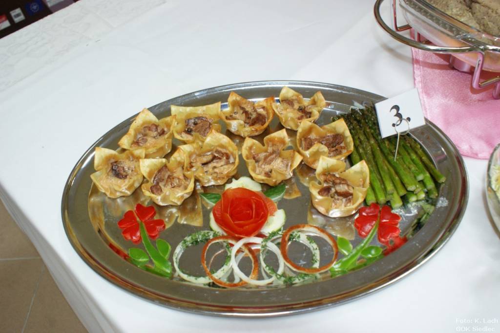 Nie minął rok kiedy u Pana Wójta zjawiła się firma, z którą uzgodniliśmy stworzenie książki. Żeby ją przygotować musieliśmy przeprowadzić konkurs dwa miesiące wcześniej niż zwykle. Nie było problemu z otrzymaniem przepisów, a jednym wysiłkiem było przepisanie ich na komputerze. Dodatkowo niezbędne było wykonanie profesjonalnych zdjęć, dlatego wszystkie dania prezentowane były w dwóch wersjach. Pierwsze tradycyjnie podawane były na półmiskach bez jakichkolwiek oznakowani dla celów konkursowych, natomiast druga wersja na talerzach z pięknymi dekoracjami.