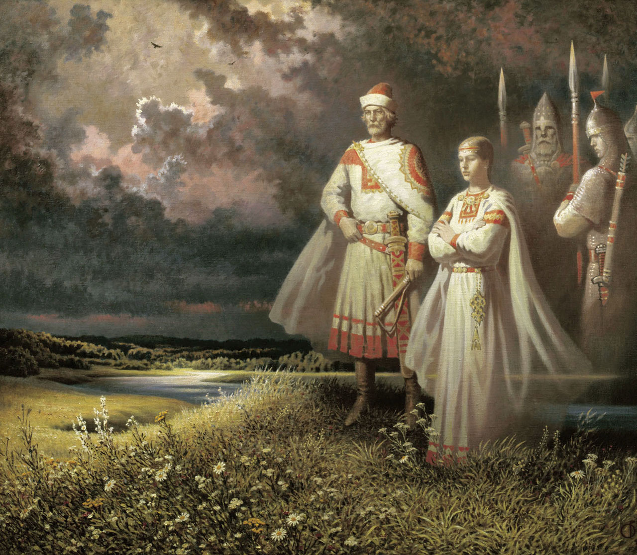 Spójrz, mądrości ruska, jak wielka jest mądrość bogów! Jedna jest dla nas, jej słuchajmy, dla niej żyjmy, a staniemy się jednością z bogami… Krótkie jest nasze życie, lecz musimy jak te nasze konie ciężko pracować, żyjąc z cielętami, owcami i bydłem na naszych ziemiach, od wrogów uchodząc na północ…