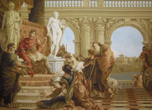 Neron legł tymczasem na pobliskim łożu. Eunicos przycupnął u jego stóp i jadł daktyle z ręki nowego pana.