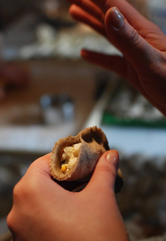Pierogowe warsztaty były przeplatane opowieściami z Litwy. Z fascynacją słuchaliśmy kulinarnych opowieści o razowych pierogach z nadzieniem z białej kapusty, sera i jajek. Ich smak brzmiał abstrakcyjnie! -Musieliśmy spróbować!