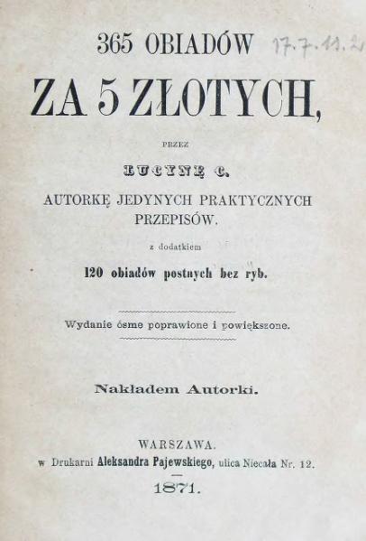 Dzieląc spis potraw na dane miesiące, Ćwierczakiewiczowa zwraca uwagę na dostosowanie potraw do danej pory roku oraz, jeśli w danych miesiącach występuje post, proponuje na ten okres więcej obiadów o charakterze postnym, oznaczając je dla łatwiejszego rozróżnienia na początku swego poradnika krzyżykiem. Takie oznaczenie potraw przywołuje na myśl porady dla gospodyń domowych przekazywane w obrębie ogniska domowego na przestrzeni lat, tym bardziej, że Ćwierczakiewiczowa jest również autorką wydawnictw poświęconych kursowi prowadzenia gospodarstwa dla kobiet, przepisów na różnorodne przetwory oraz poradnika porządku, dlatego postrzeganie książki kucharskiej jako poradnika dla kobiet wydaje się jak najbardziej słuszne, a tezę potwierdza wprowadzenie sporządzone przez samą autorkę: