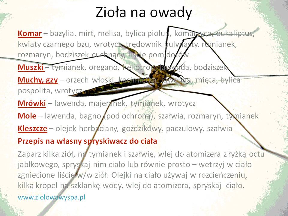 Oto ziołowe sposoby na kleszcze, komary, muchy, gzy, muszki – wszystko to, co tak bardzo uprzykrza nam życie w czasie letnim. Do lasu ubieram jasną bluzkę z długimi rękawami, długie spodnie. Po wyjście zawsze się otrzepuję i oglądam się pobieżnie. Przed wyjściem na spacer spryskuję siebie wywarem z ziół. Wieczorem biorę kąpiel i sprawdzam ciało.